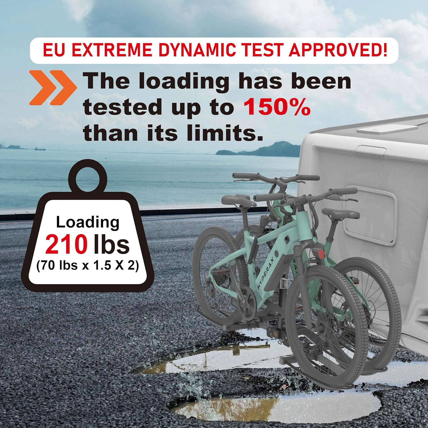 HYPERAX Volt RV -RV Approved Hitch Mounted 2 E Bike Rack Carrier for RV,Camper,Motorhome,Trailer,Toad with 2" Tow Hitch Receivers - Up to 2X 70lbs eBikes with Up to 5" Fat Tires