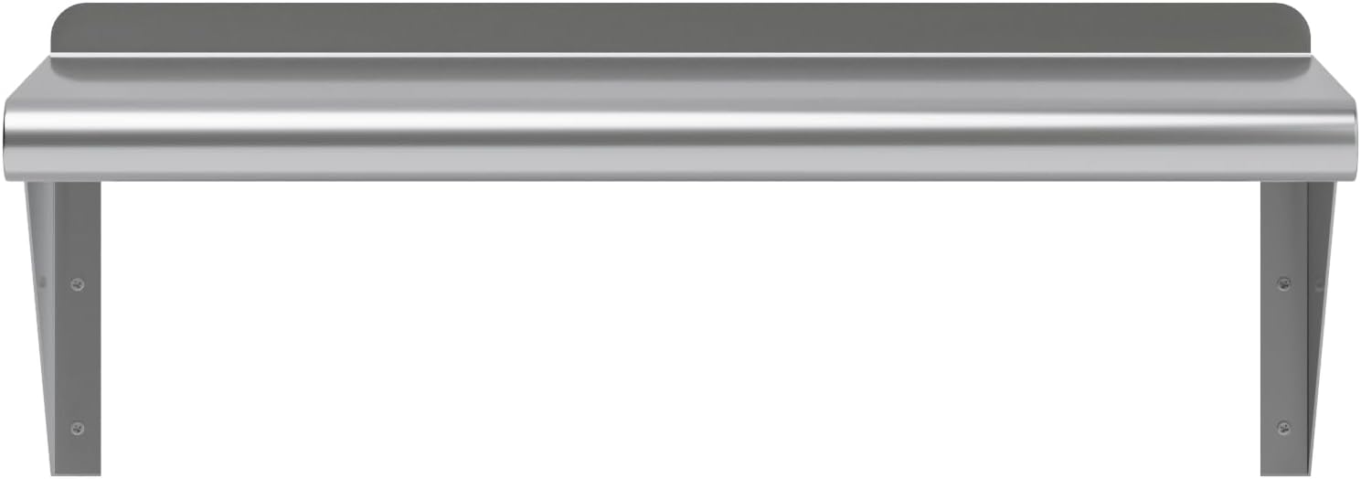 - 10 in. x 24 in. Stainless Steel Wall Shelf with 8 in. High Mounting Brackets. This heavy-duty multifunctional stainless wall shelf is made with 18 gauge stainless steel and can hold up to 185 Lbs of weight. The design features a 1 in. backsplash and bullnose edge. It's made with durable welded corners and support brackets.