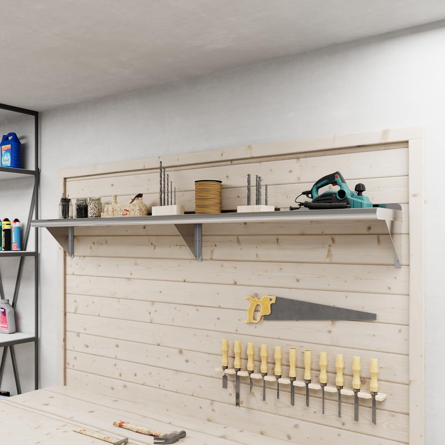 - This corrosion-resistant wall mount shelf can handle anything you throw at it and will last for years to come. Easy to clean and sterilize, metal shelves are superior to wood or glass. Food and liquid wonโt get stuck or ruin the integrity of the surface. Easily wipe away excess with no fuss, mess, or contamination.