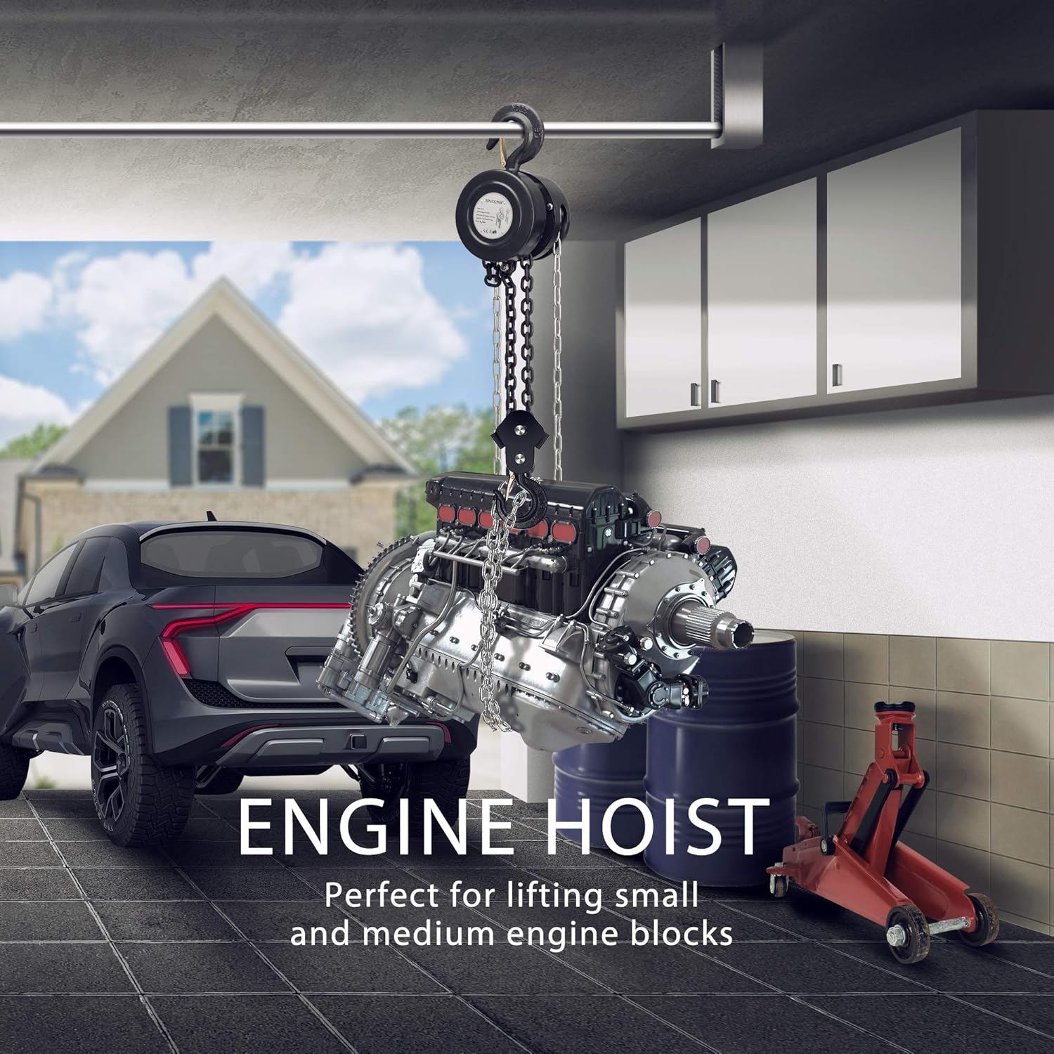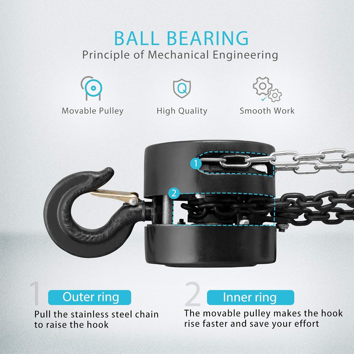 - DURABLE DESIGN - Mounted with an alloy steel manual chain with a black oxide finish which is resistant from corrosion and grime; The heavy-duty chain is forge-heated and combined with steel gear milling to strengthen durability; Cold-rolled steel cover protects the chains and gear system and improves reliability of this hoist