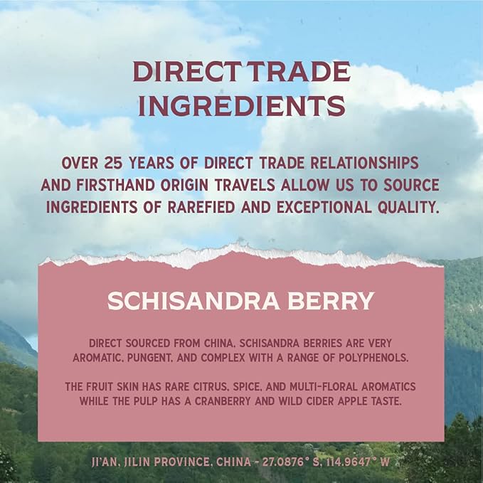 - Elevating Sparkling Water - Tart and quenching with a lovely rosé color, Schisandra Berry is an adaptogenic elixir crafted from a single ingredient: forest grown schisandra berry