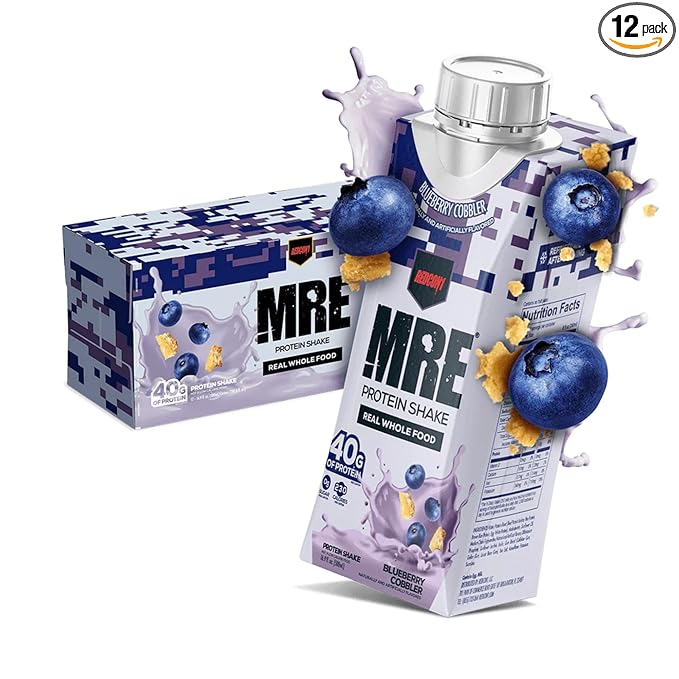REDCON1 MRE Ready to Drink Protein Shakes, Blueberry Cobbler - Lactose + Whey Free RTD Protein Made with Real Whole Food Protein Blends - Keto-Friendly and Easy to Digest Nutritional Shake (12 Pack)