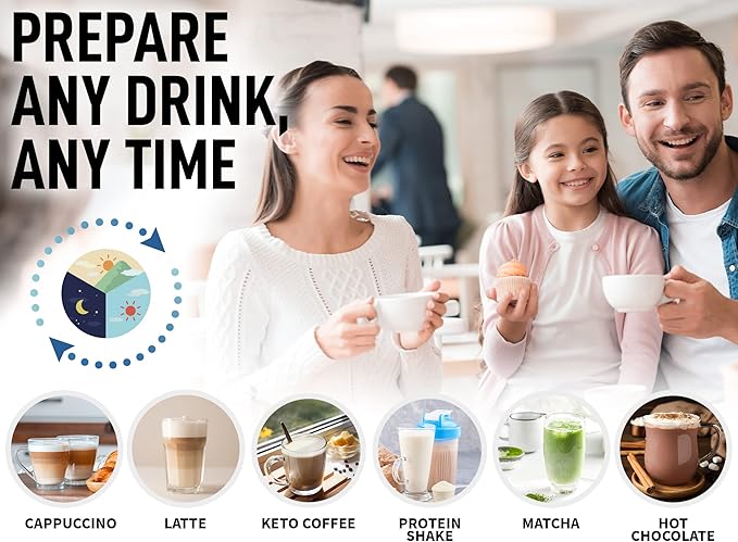 - CREAMY VELVETY FROTH IN SECONDS: Making coffee-shop-style recipes at home is as simple as it can be with this milk frother. The 13,000 RPM motor and 25 spiral rings on the whisk let you whip up rich foam in no time. Level up your everyday warm or cold coffee, latte, cappuccino, hot chocolate, matcha, or powdered drinks with this coffee foam.
