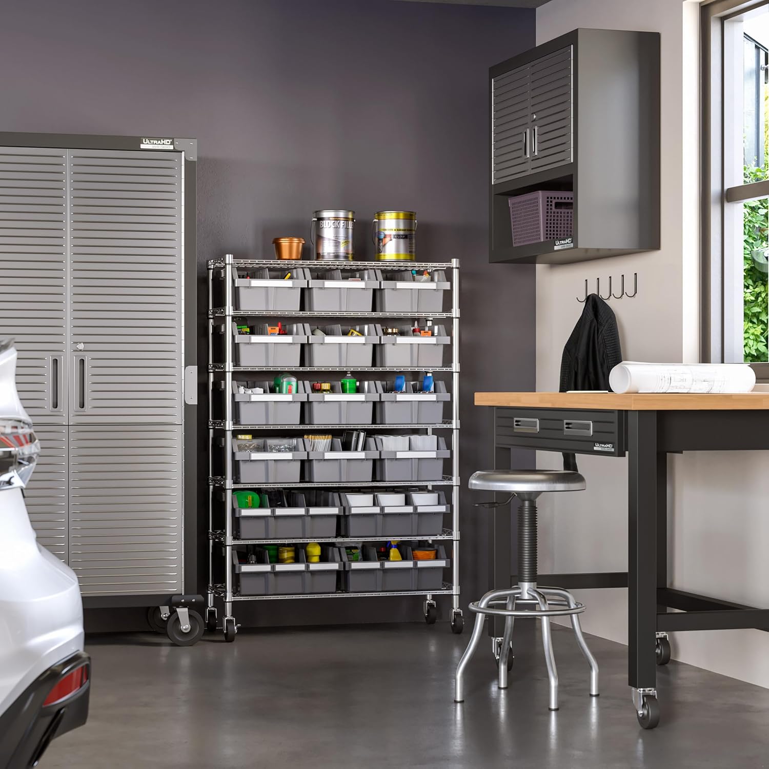 Seville Classics Heavy Duty NSF Bin Rack Solid Steel Wire Shelving Storage Unit, Patented Organizer for Garage, Warehouse, Office, Restaurant, Classroom, Kitchen, Gray, Includes 16 Bins