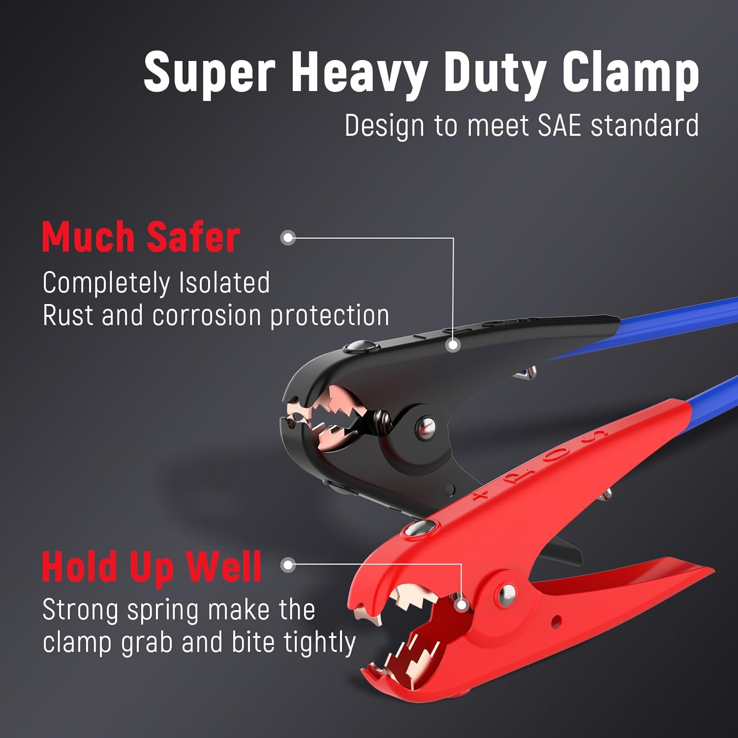 - Strong And Safe Clamps: The TOPDC Jumper Cables have two giant alligator clamps with strong jagged teeth and springs for excellent grip force. The jaws are strong and make connections easy. And the High Peak Jumper Cables has insulating material to prevent electric shock and protect the safety of users