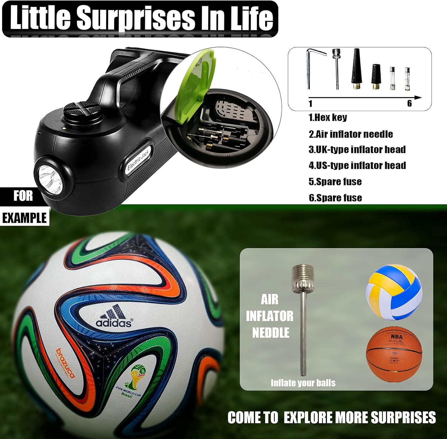 - Hidden Surprise: The built-in inflation hose of the car jack can provide enough gas for the flat tire, you can monitor the tire pressure at any time through the LCD display screen on the jack. Meanwhile, this electric car jack kit 5 ton can offer other small accessories for other purposes. For example, air inflator needle can be used to inflate football, basketball and etc. More surprises deserve your discovery
