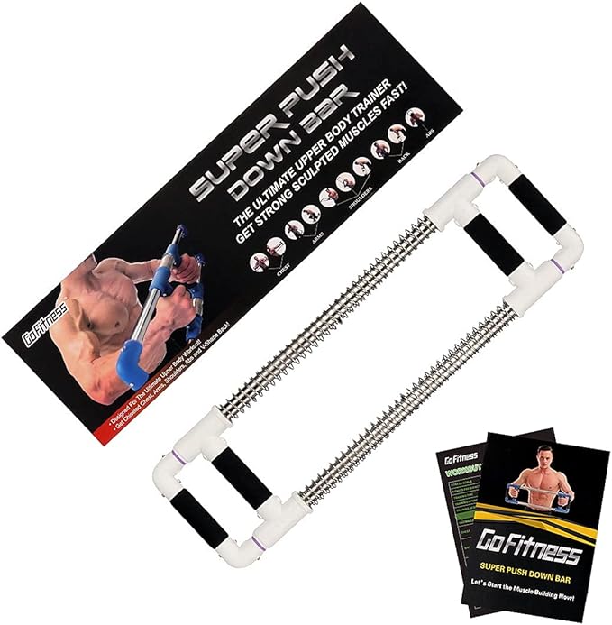 - FULL UPPER BODY WORKOUT EQUIPMENT: GoFitness Super Push Down Bar acts as your personal workout trainer - helping you build a bigger and stronger chest rapidly. More than just a chest muscle builder, the GoFitness upper body exerciser can also be used to target precise muscle groups to accelerate growth, enhance definition and increase strength - including chest, arms, abs, shoulders and back.