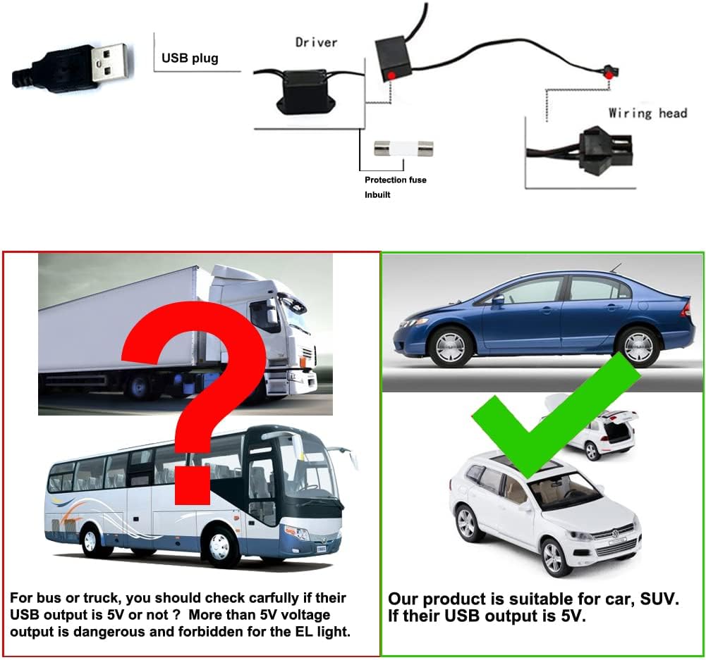 - [Flexible and Cuttable EL Wire] El auto wire is flexible and Thin , can be bent into any shape and cut into any length.