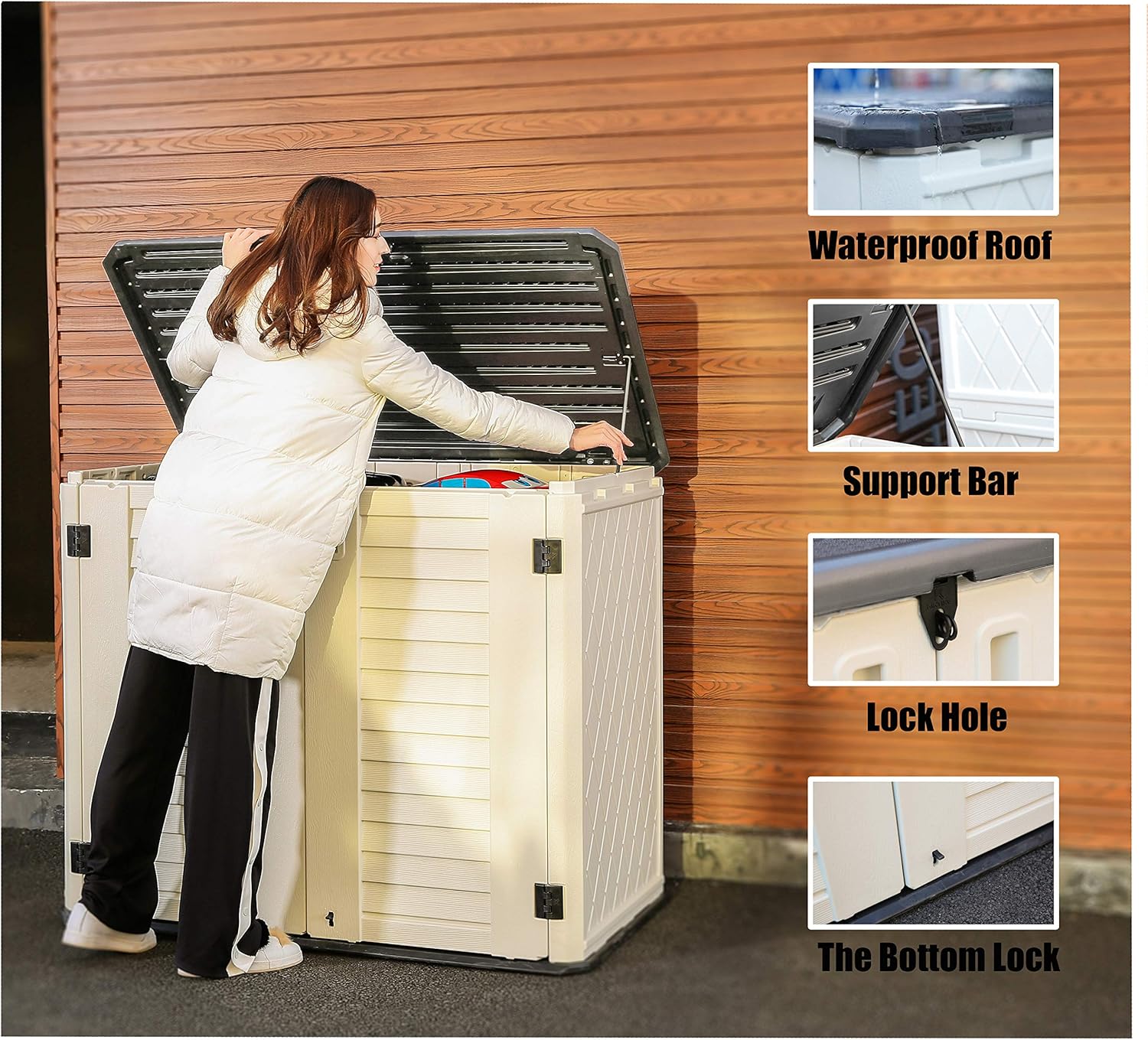 ADDOK Horizontal Storage Shed Weather Resistance, Large Outdoor Storage Cabinet Lockable, Thick HDEP Plastic Storage Unit for Backyards, Patio, Garden(26 Cu.ft/Ivory White)