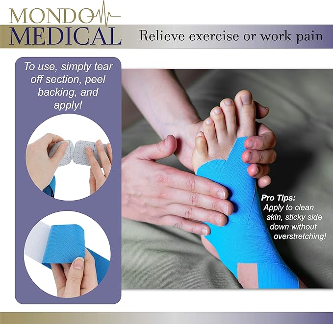 Mondo Medical Kinesiology Tape Precut Strips 2in x 16ft Roll - Blue Athletic Tape for Skin Muscle Sports Body Tape