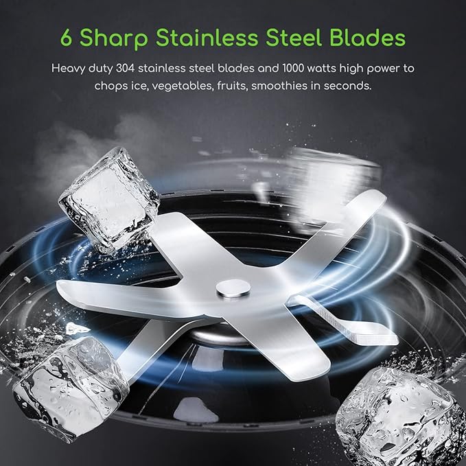 - π§ STRONG BLENDER FOR KITCHEN: Compare to 4 blades, 6-blending blades reaches 23,000 rpm can be multi-angle ingredients quickly broken up, tear cellulose, release nutrients, and prevent food deposits, double blade placement make food more smooth and even. Juicer blender for smoothies, fresh fruits, frozen desserts, frozen fruits, soups, nuts, sauces, dipping sauces, milkshakes, salsa, etc.