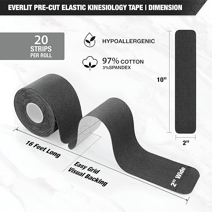 - ✅【Everlit Kinesiology Tape】: Everlit Kinesiology Tape can help to support, relax soft tissue, improve incorrect posture and enhance joint stability.