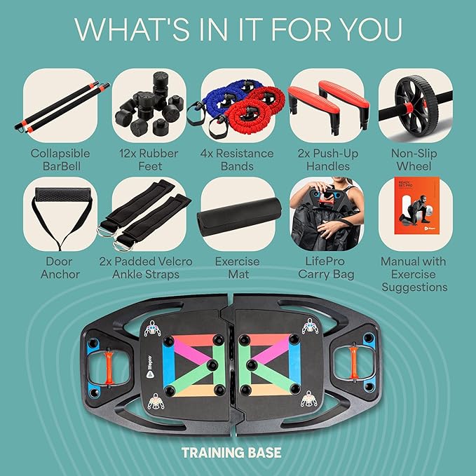 Lifepro Portable Home Gym with Push Up Training Board for Full Body Workouts Push Up Rack Board with 4 Resistance Bands - Home Workout kit Platform for Home Workouts