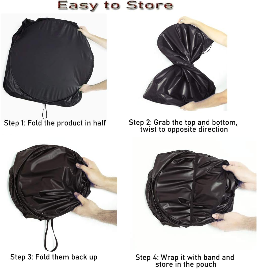 - Premium Quality- 240T Reflective thicker material than other winshield sun shade blocks the sun's heat and harmful UV radiation rays and keeps your seat and steering wheel cool.