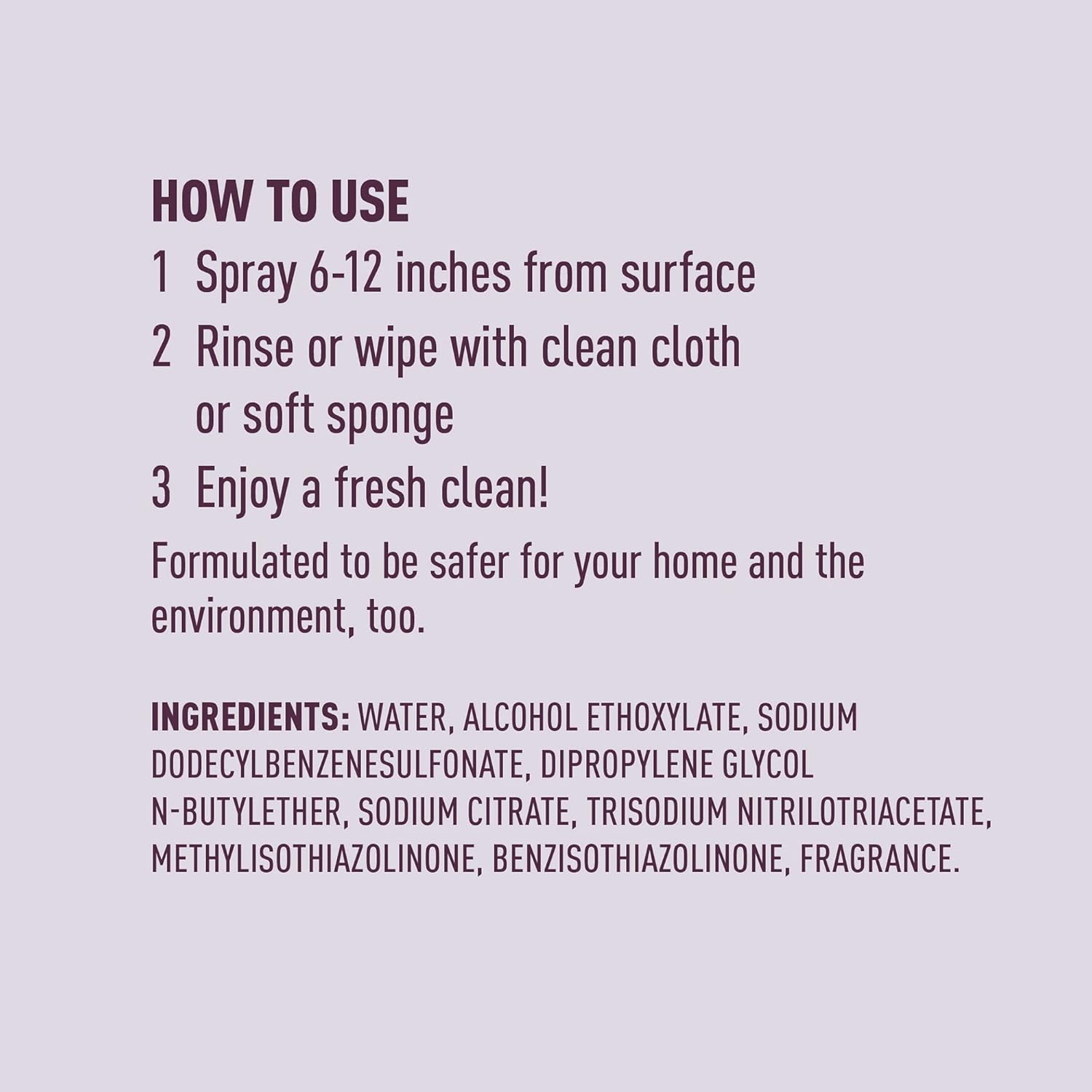 • HOW TO USE: Spray on surface, rinse or wipe with clean cloth to help keep your home or office fresh and bright