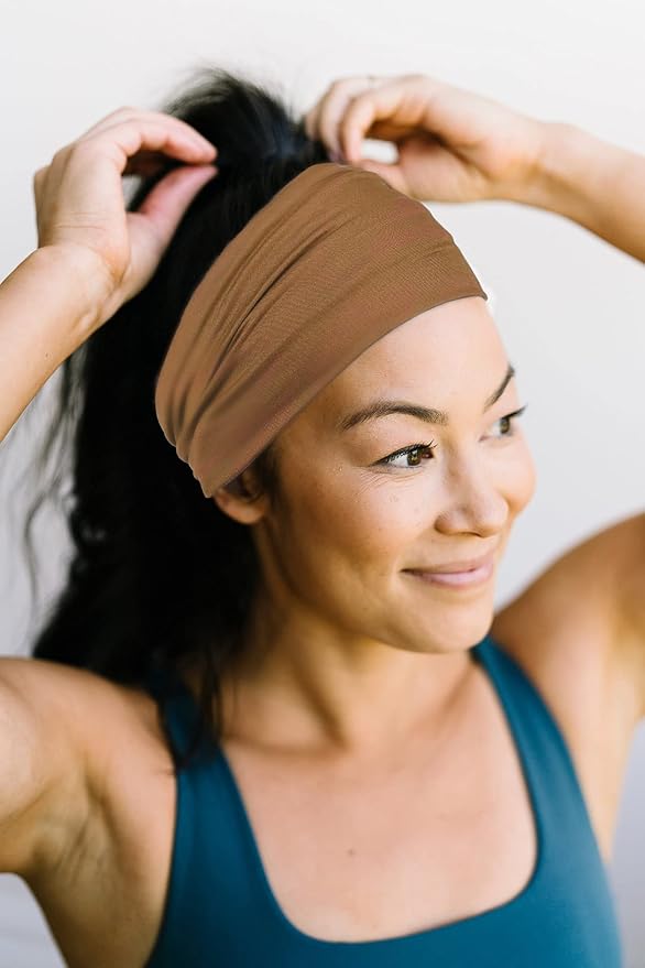 - Headbands are meant to fill two important purposes — to absorb sweat and to keep hair out of your face. We chose the softest material available to ensure wearers’ comfort, and we offer our women’s headbands in 5.5-inch width,so you can fold it as you like. We ensure that the material we choose contains just the right proportion of spandex so that our workout headbands are stretchy enough to stay in place without slipping off but not so tight that they’re uncomfortable.