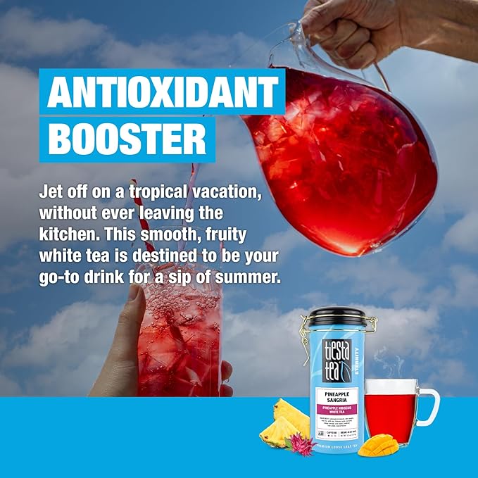 - TROPICAL PINEAPPLE HIBISCUS WHITE TEA: Escape to a tropical paradise with Tiesta Tea’s Pineapple Hibiscus White Tea. Perfect for summer, this smooth and fruity blend offers instant refreshment, whether you enjoy it hot or iced. Relish the essence of summer in every sip, no matter the temperature.