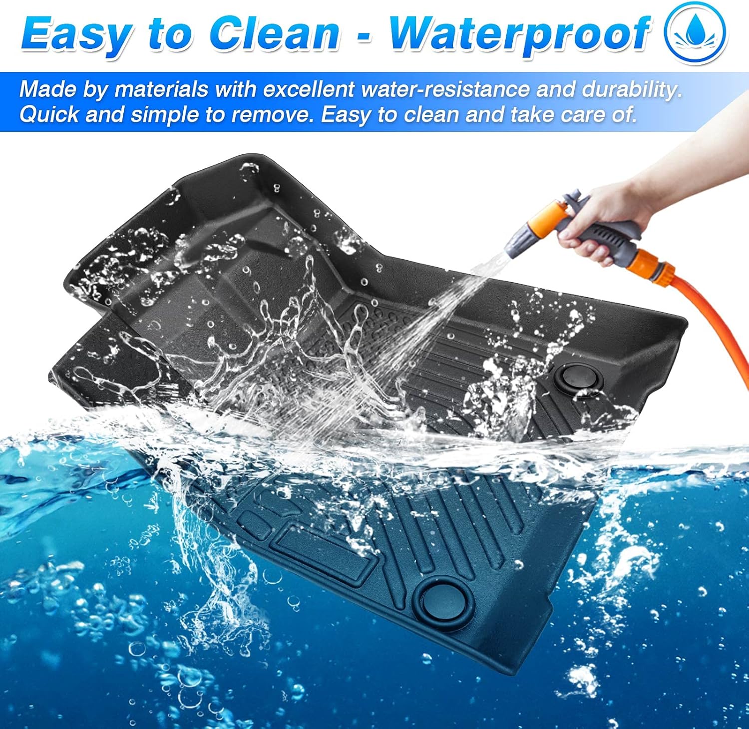 - All Weather Protect & Cleaning -- The carpet cover are waterproof, and the groove design forming channels to collects water, mud, snow, debris, ect, to avoid accidental skidding and stain to original car carpets. Easy to clean by rinsing it with water, and dry with towel.