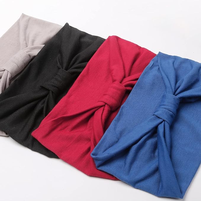 - 4 Value Packs - 4 Packs solid color headbands come with blue, wine red, light gray and black colors, great value packs.