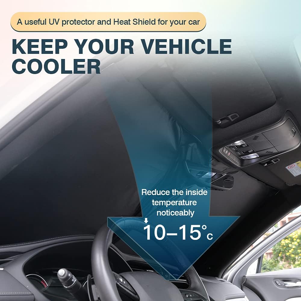 - Highly Reflective Protection -- The Sorento windshield sun shade will provide maximum protection for your car interior by blocking 99% of UV rays and sunlight. Not only protect the dashboard from fading and cracking, but also protect people skin by blocking the harmful UVA. Offering you a cool environment by lower the temperature by 50-59Β°F.