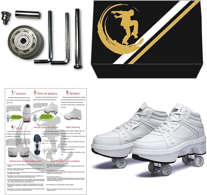 - Transformative Design: Say goodbye to carrying around bulky roller skates! Experience the thrill of skating and the comfort of sneakers like never before with our innovative 2-in-1 Roller Skates and Sneakers! Designed for both style and functionality, these incredible shoes seamlessly transform from trendy everyday sneakers to sleek roller skates with hidden wheels, giving you the freedom to switch between walking and rolling whenever you desire.