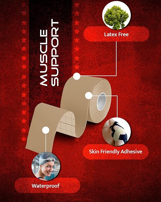 - LONG-LASTING COMFORT - Premium cotton / spandex fabric is lightweight, latex-free, breathable, & WATERPROOF. Our kinetic tape is hypoallergenic, skin-friendly, and lasts for 4+ days _ providing you with long-lasting support during physical activity.