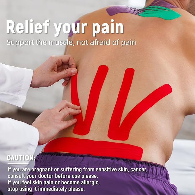 - â˝ď¸ăFaster RecoveryăReduce tissue pressure and support muscles and joints, helping you recover from pain faster. Kinesiology tape is used for knees, shoulders, back, soles, elbows, etc.