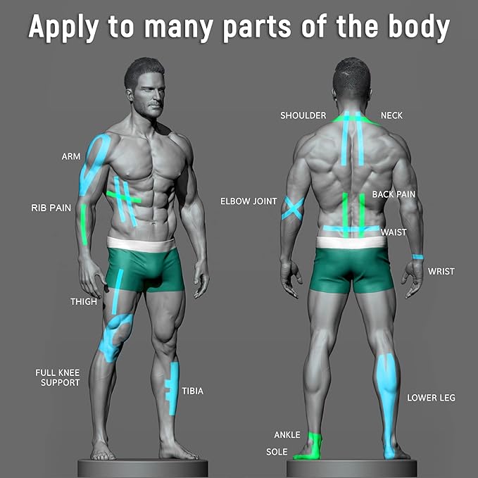 - Faster Recovery: Reduce tissue pressure and support muscles and joints, helping you recover from pain faster. Kinesiology tape is used for knees, shoulders, back, soles, elbows, etc