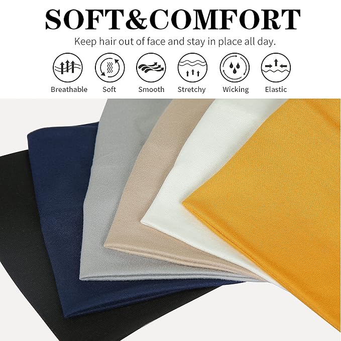 GILI 6 Pack Wide Headbands for Women Non Slip Soft Elastic Hair Bands Yoga Running Sports Workout Gym Head Wraps, Knotted Cotton Cloth African Turbans Bandana (with 6 Pcs Hair Ties)
