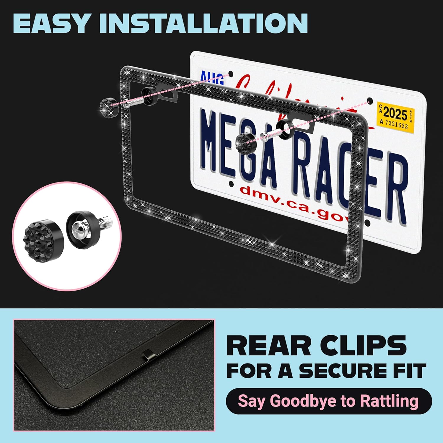 - Slim Thin Edge Design: Add sparkle without hiding your tags! The sleek thin-edge design perfectly fits US standard plates, keeping your tags fully visible and your ride stylish.