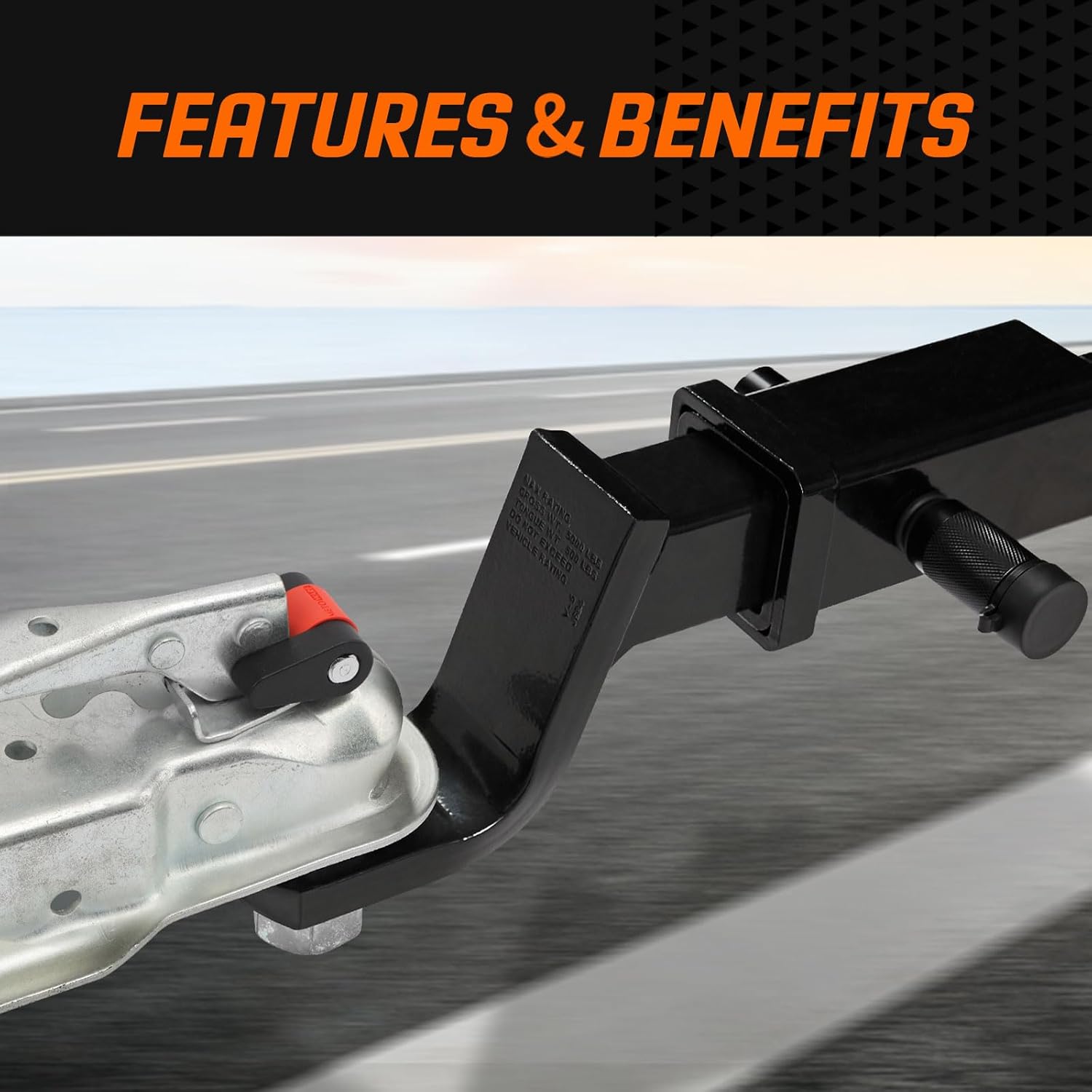 - 【PREMIUM MATERIAL】- Made of premium strength steel and coated with electrophoretic paint, the trailer tongue lock is durable and rust-proof. It is reliable for long-term hauling and secure for full protection, safely protecting your trailer, boat, camper and so on from theft.