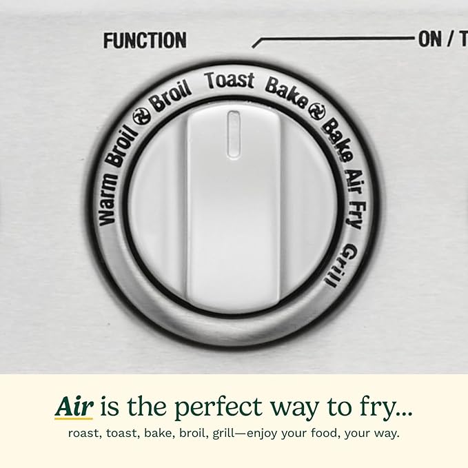 - SUPERIOR OPERATION: Equipped with an adjustable temperature dial, 60-minute timer/auto-shutoff, and a toast shade selector, this air fryer toaster oven features a wide temperature range (Warm-450ยฐF) to ensure your meals are cooked to your perfection