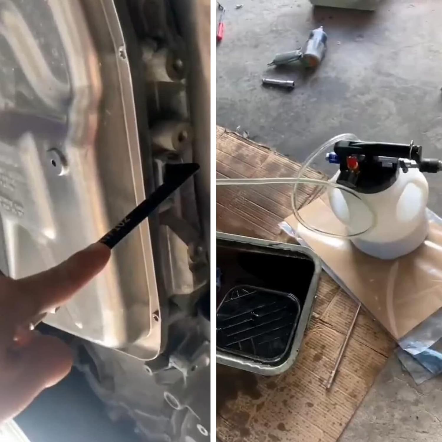 - Handsfree Pneumatic Helper: This transmission fluid pump will keep you away from boring laborious manual work with air compressors. Two-way extractor and dispenser tool saves energy and time; Don't even need to pour oil manually! You only need to switch the extract or dispense mode and buckle the self-locking device. Large capacity avoids the trouble of repeated refueling and satisfys refueling needs of multiple vehicles at once. Quick and sparkless