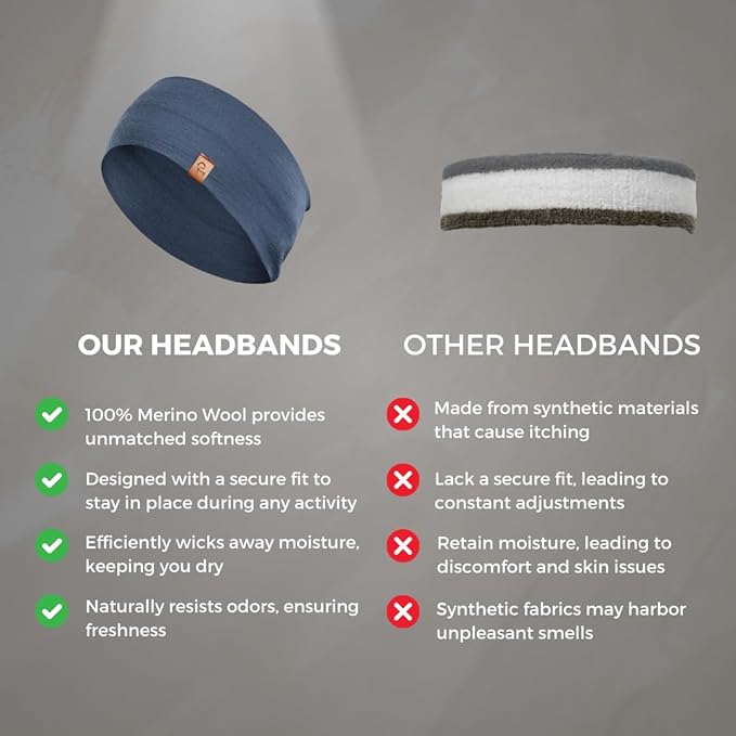 - π§ MOISTURE MANAGEMENT: Embrace the superior moisture control of our women's headband, designed to keep you cool and dry without the inconvenience of dampness. The breathable structure of Merino wool allows air to flow freely, ensuring a refreshing and comfortable experience.