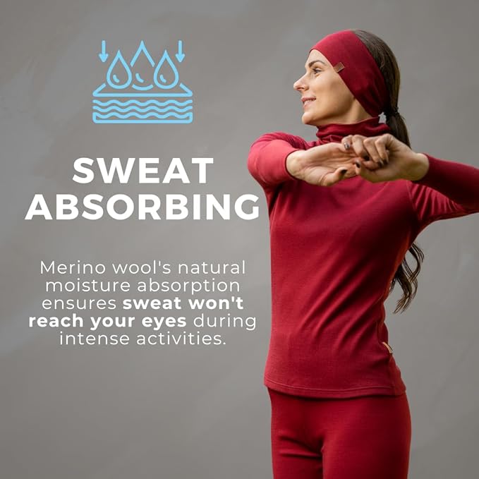 - π§ MOISTURE MANAGEMENT: Embrace the superior moisture control of our women's headband, designed to keep you cool and dry without the inconvenience of dampness. The breathable structure of Merino wool allows air to flow freely, ensuring a refreshing and comfortable experience.