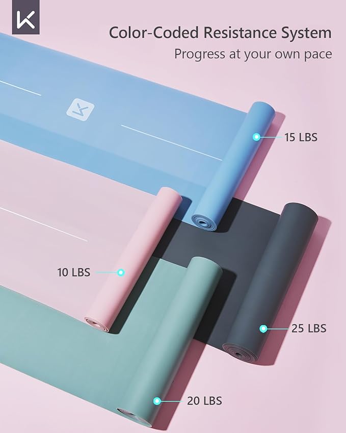 - Tailored for Every Fitness Stage: A distinct color to represent a specific resistance level: Pink for 10 lbs, Green for 20 lbs, and Gray for 25 lbs. This color-coded system allows for a gradual, tailored approach to your workouts, helping you progress at your own pace. Whether you're just starting out or advancing to more challenging exercises, our bands are designed to match your training needs, ensuring a professional and effective workout experience
