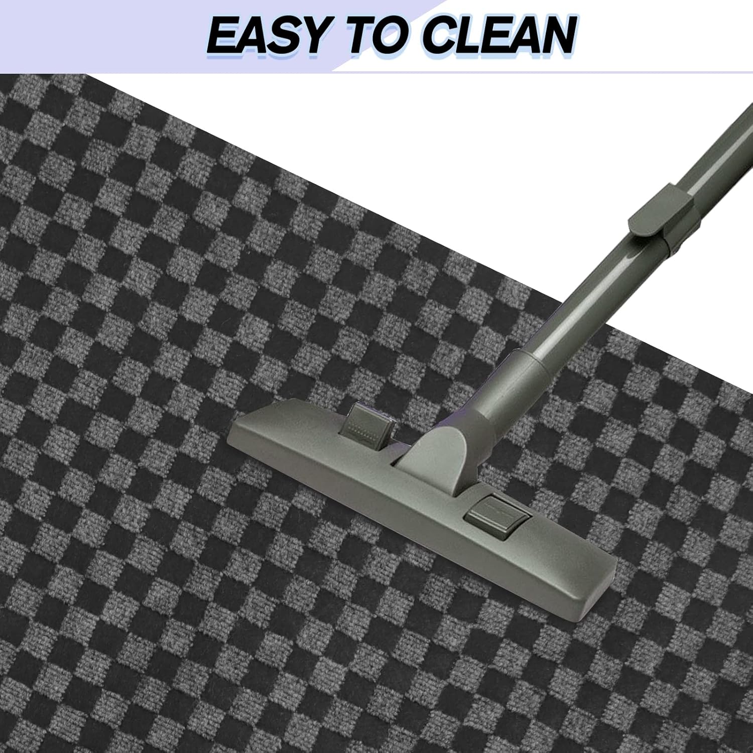 Custom Size Backed Non-Slip Area Rugs Runner, Easy Clean, Waterproof Runner Rugs for Hallway Entryway, Kitchen, Laundry, 2FT x 33FT, Gray Checkered