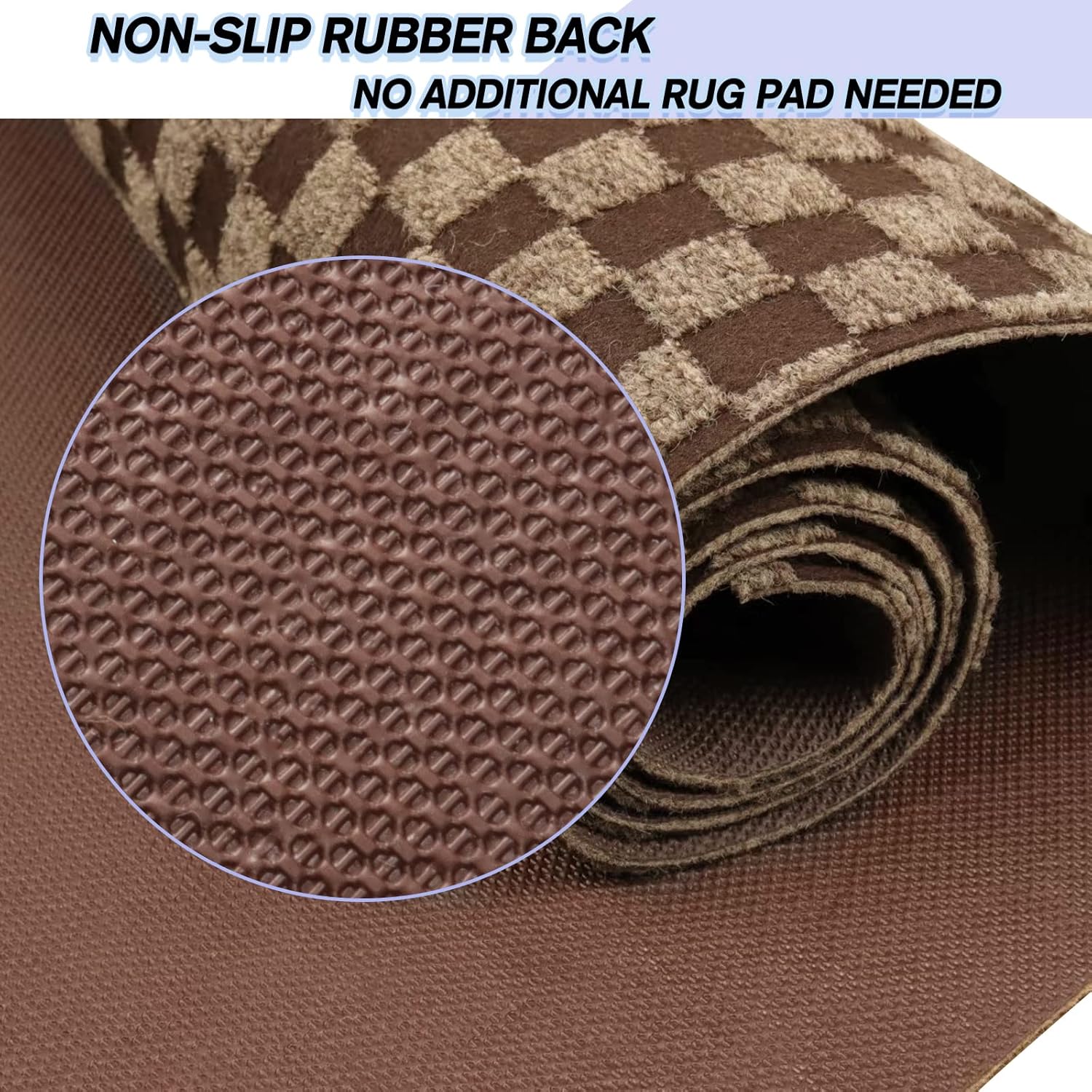 Custom Size Backed Non-Slip Area Rugs Runner, Easy Clean, Waterproof Runner Rugs for Hallway Entryway, Kitchen, Laundry, 4FT x 37FT, Brown Checkered