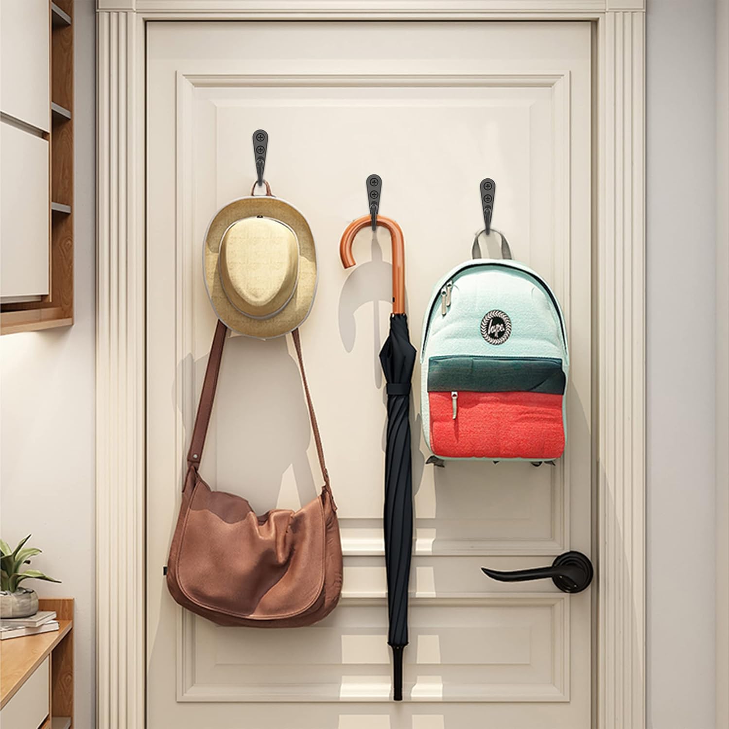 - Material: The Coat Hooks not easy to break, anti-rust and anti-corrosion, The Coat hooks are made of zinc alloy and the screws are made of iron, which is hard and durable