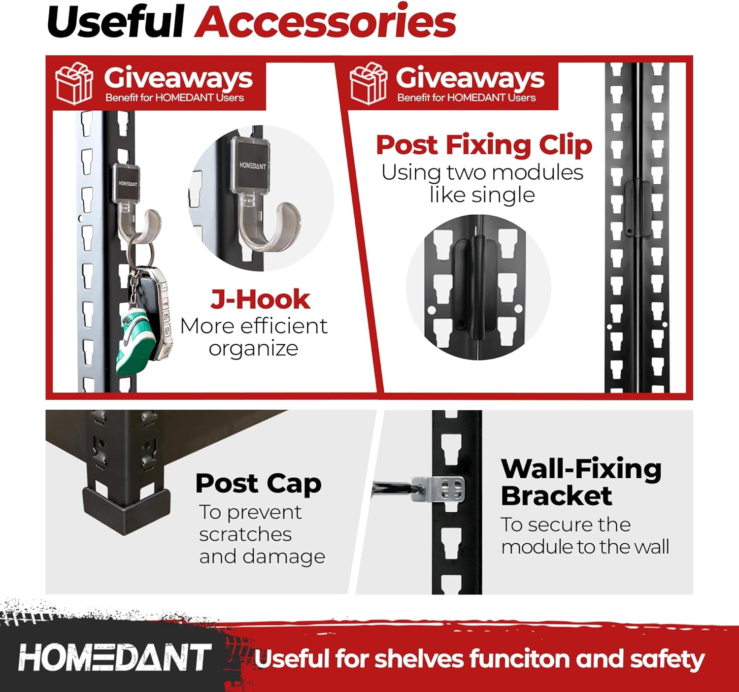 - UNIQUE BENEFIT OF ONLY HOMEDANT - You can assemble support beam in three styles (3B style) depending on what types of things you load on the shelves. Provide all purchasing customer special gift (J-hook, Post-fixing clips). For more information, please refer to Product Description. You can download the Installation Manual in Product guides and documents at the bottom of product description.