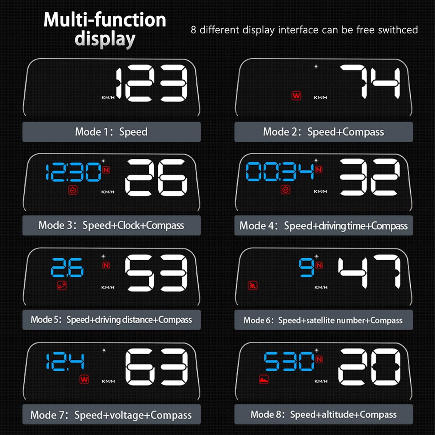 - 【Multi-function display】8 different displays can be switched freely, and you can choose the page you need; two alarm functions alarm reminders to make your driving safer.