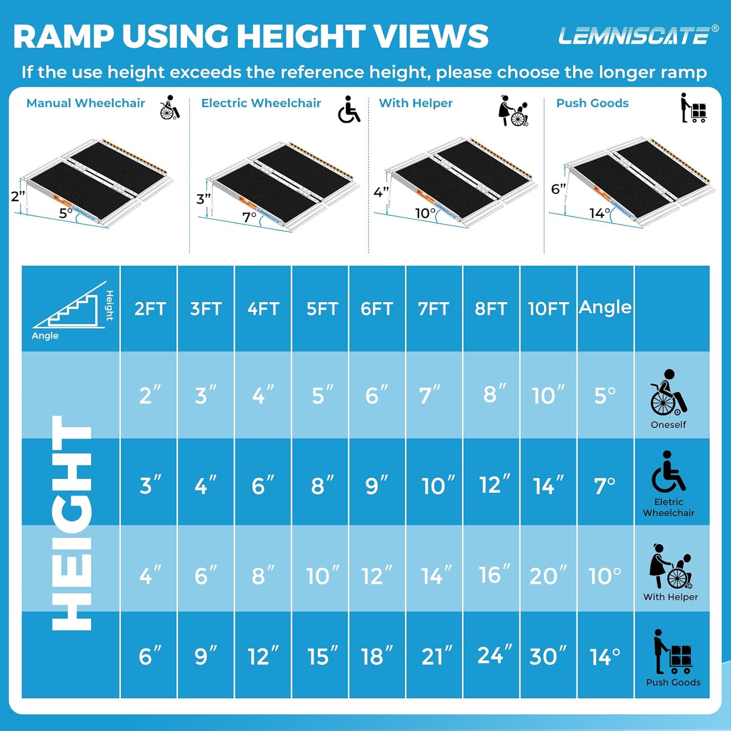 - ⚠️LEMNISCATE 2FT Wheelchair Ramps are only suitable for step heights of 2"-6"step.The best recommended height is 4 inch.Unfolded size:24"L*29"W*2"H.Folded size: 24"L*14.5"W*2.8"H. Please refer to the size guide before purchase