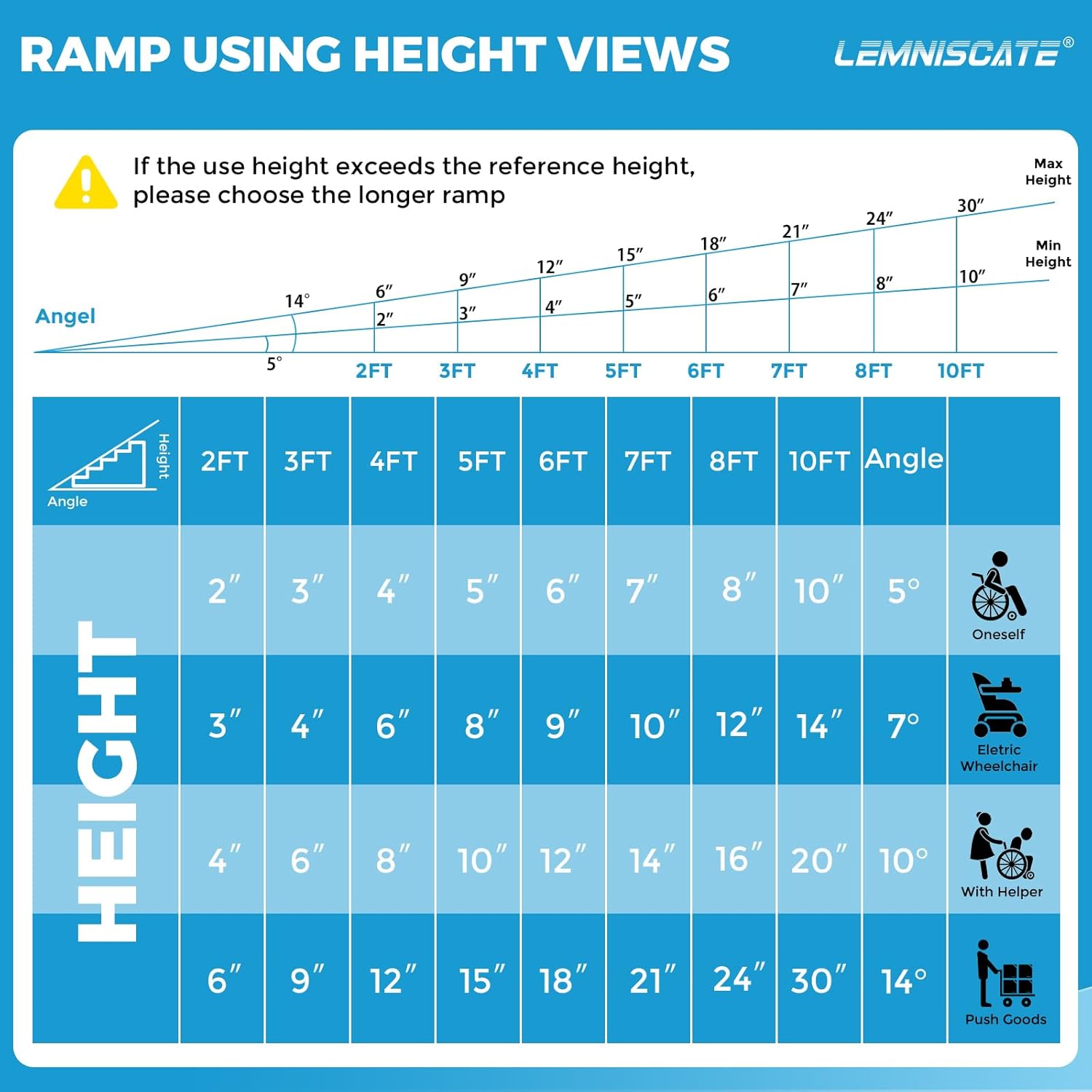 - ⚠️LEMNISCATE 3FT Wheelchair Ramps are only suitable for step heights of 3"-9"step.The best recommended height is 6 inch.Unfolded size:36"L*29"W*2"H.Folded size:36"L*14.5"W*15.6"H.