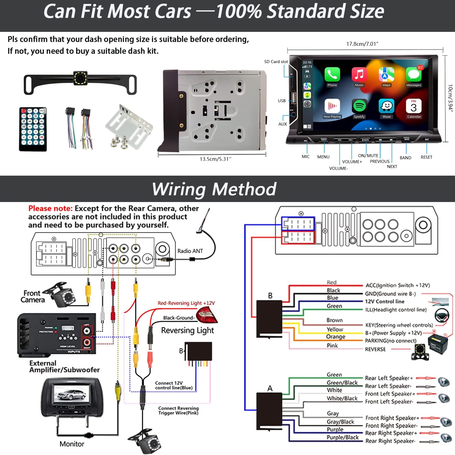 - Color : 7'' Car Stereo with CarPlay