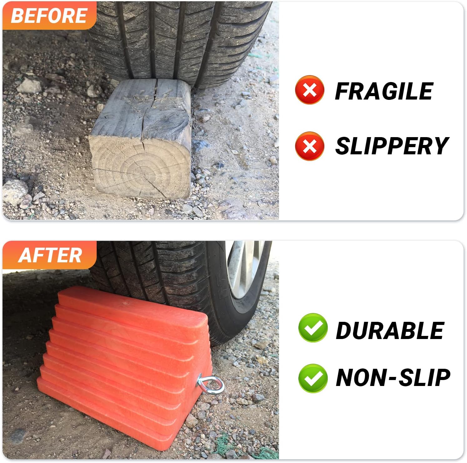 - Ideal Choice: This wheel chocks breaks the conventional black, using the orange series is more eye-catching can keep your vehicle or trailer secure at any time, durable and stylish, is the best choice for wheel chock