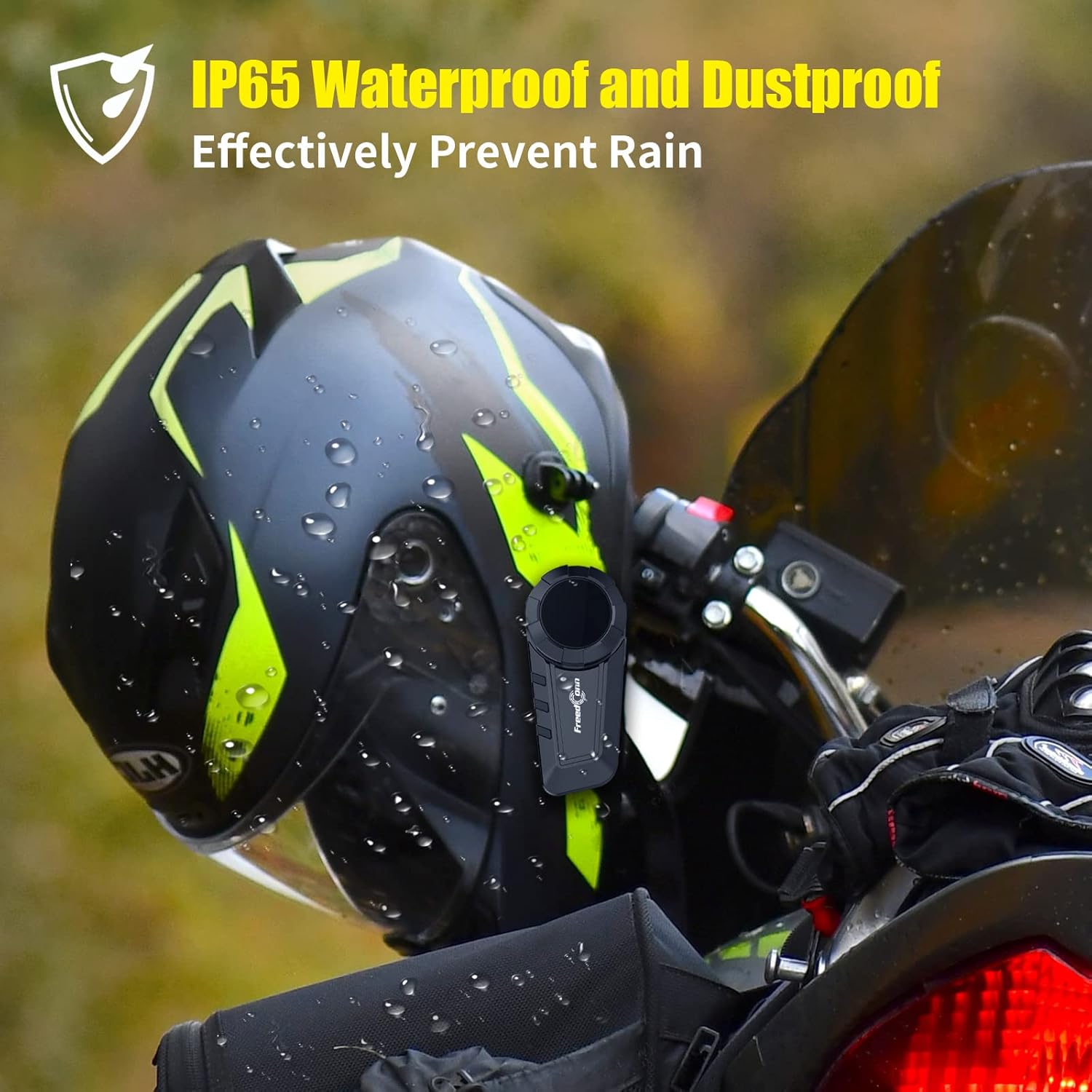 - 【Helmet-Specific Audio】Interchangeable pro-grade mics: Boom mic (noise-dampening for full-face helmets), Clip mic (360° adjustable for modular helmets), IP65 weatherproof certification ensures reliability in heavy rain