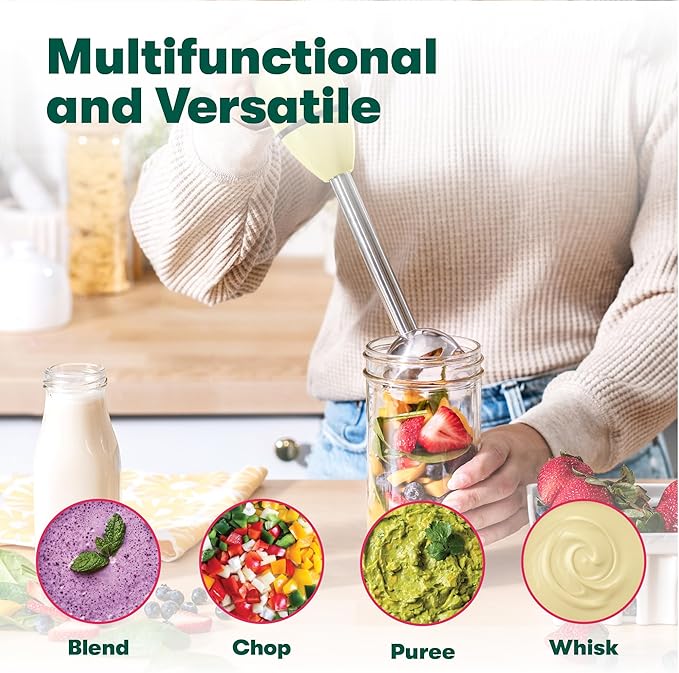 - WHISK AND CHOP WITH EASE: Featuring a detachable whisk attachment, the high speed hand mixer and emulsifier is perfect to make meringues, whipped cream, and batters for baking, while the chopper extension makes easy work of your vegetable cutting needs