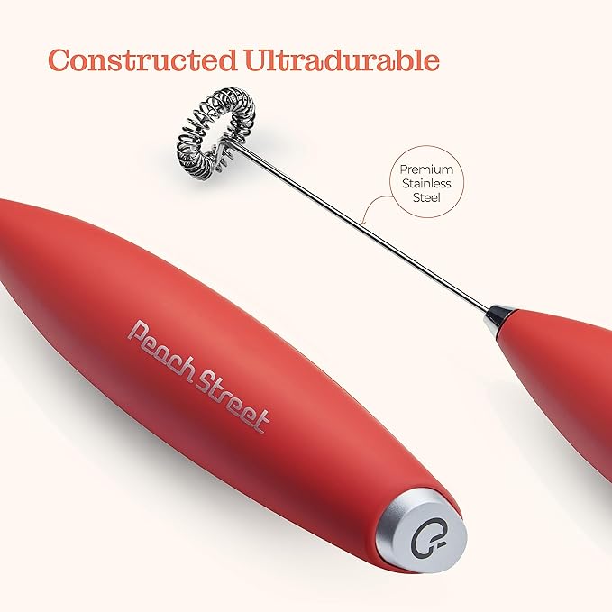Powerful Handheld Milk Frother, Mini Milk Foamer, Battery Operated Stainless Steel Drink Mixer with Frother Stand