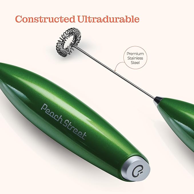 Powerful Handheld Milk Frother, Mini Milk Foamer, Battery Operated Stainless Steel Drink Mixer with Frother Stand