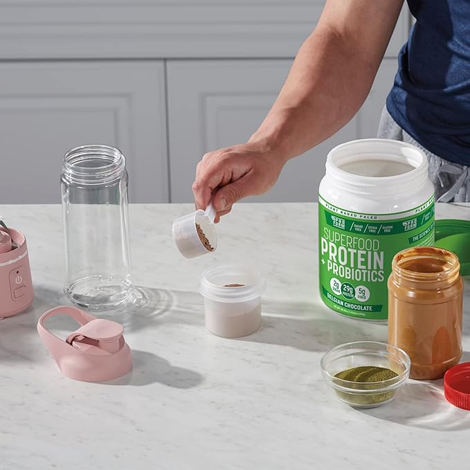 - BLEND NUTRITIOUS PROTEIN SHAKES, SMOOTHIES AND MORE ON-THE GO: Start your day with a nutritious smoothie and treat yourself to a post-workout shake. The 6 stainless steel blades easily cut through ingredients to deliver smooth results.